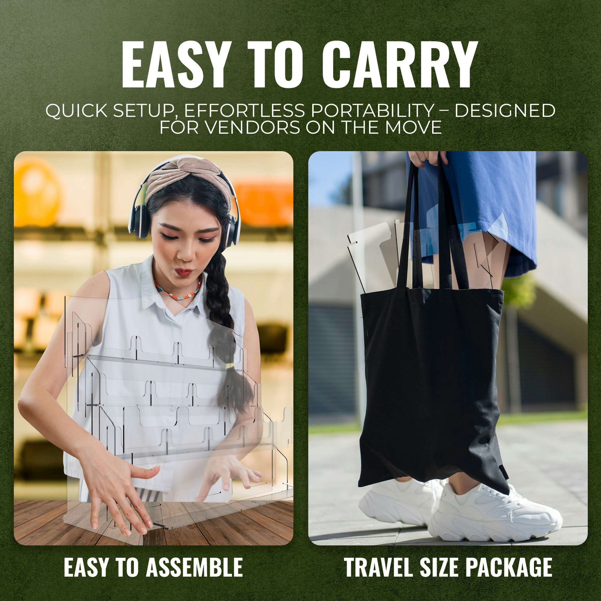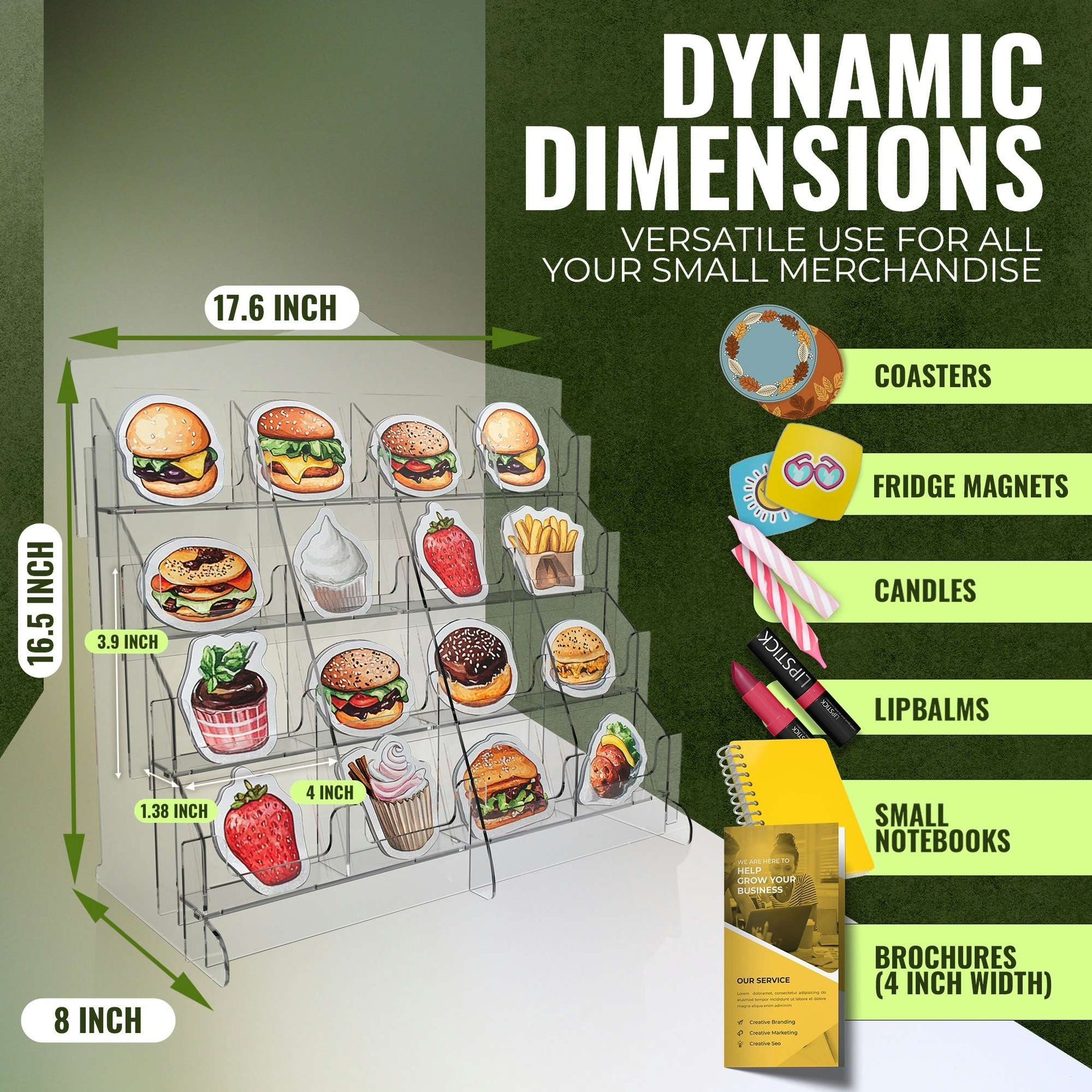 - Versatility Unleashed - More than just a sticker display! Effortlessly assemble or disassemble at craft shows with sizes great for portability. From coasters and fridge magnets to lip balms, notepads, sports card and decals—this stand caters to your diverse display and storage needs.