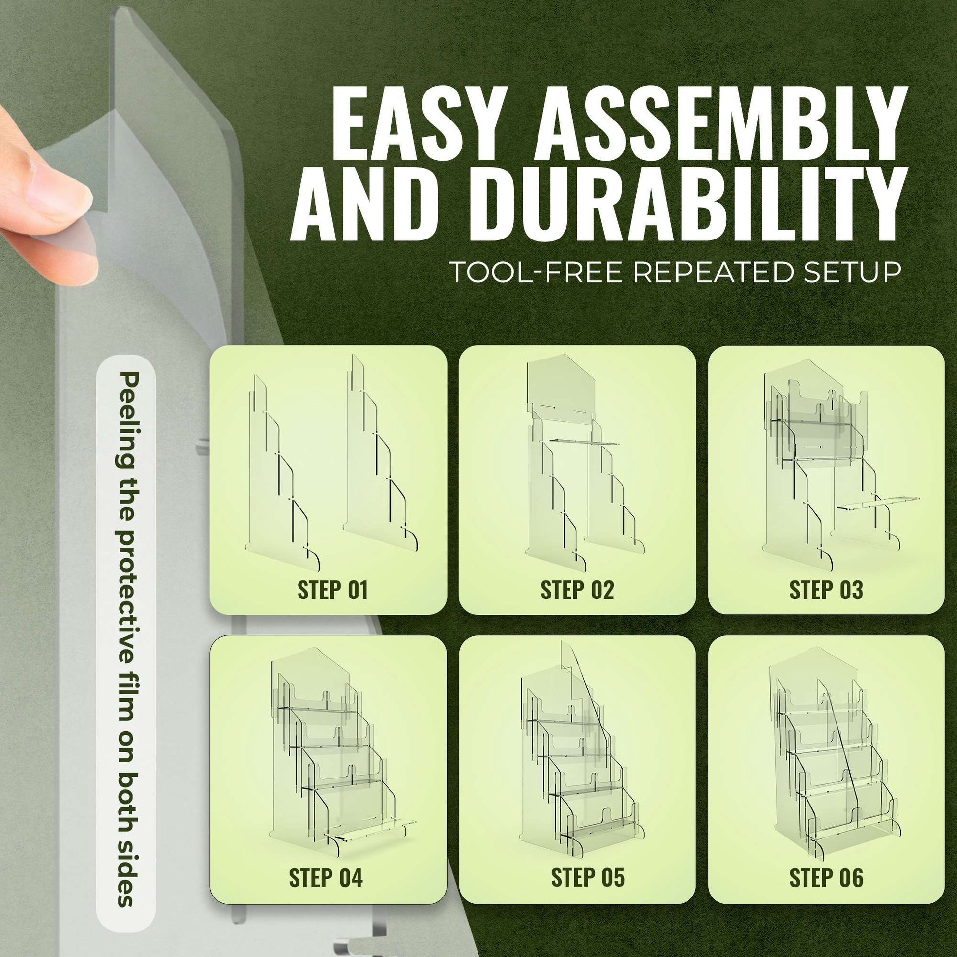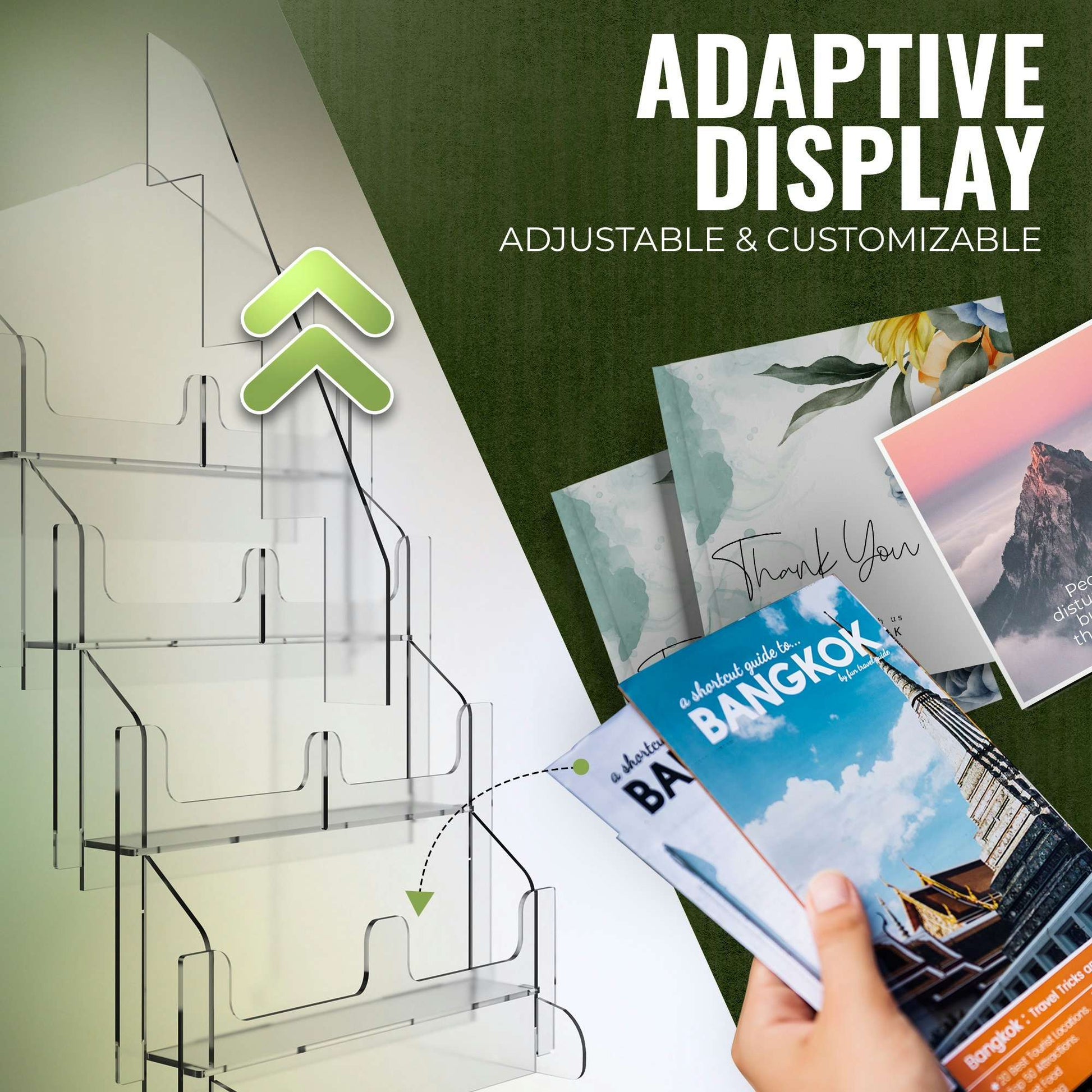 - Adaptable and Spacious - Each pocket (Width: 4’’ x Height: 3.8’’ x Depth: 1.37’’) is a canvas for your creativity. Remove the partition board to transform the stand into a versatile display for different-sized greeting cards, flyers, brochures, and pamphlets in vendor events. One stand, countless possibilities!
