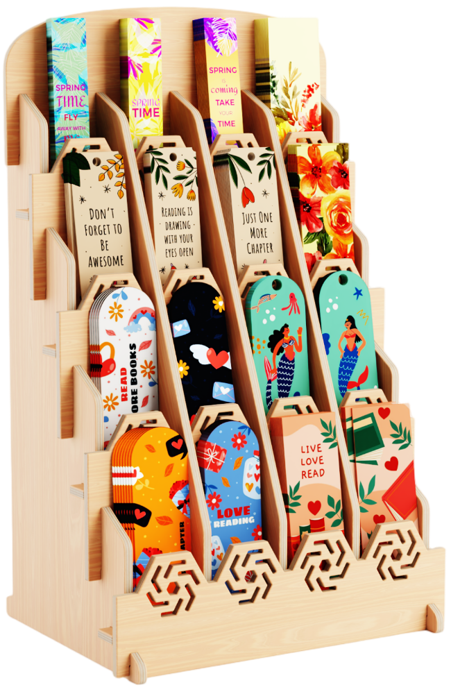 - Bulit to Last – Crafted from hardwearing plywood, this bookmark display stand ensures enduring strength for repeated setups. Whether you’re a vendor at craft fairs or setting up at a shop, this bookmark holder is the go-to solution for showcasing bookmarks with style.