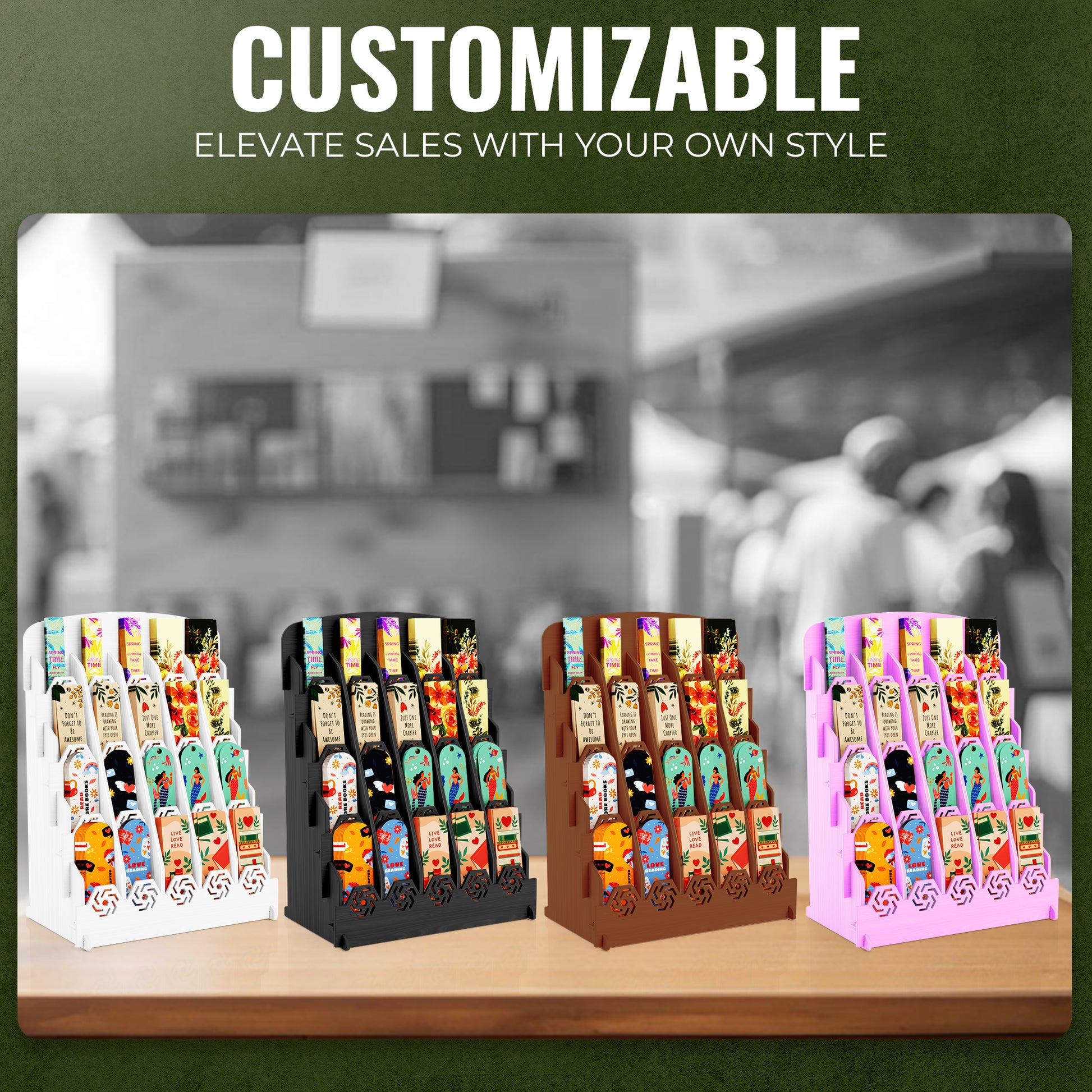 - Eye-Catching Design – With 3 stepped tiers and unique engraving pocket shapes, this bookmark holder display accommodates up to 20 bookmark varieties. Scientifically crafted to enhance visibility, this bookmark display stand for vendors is designed to boost revenue and make your booth capture attention.