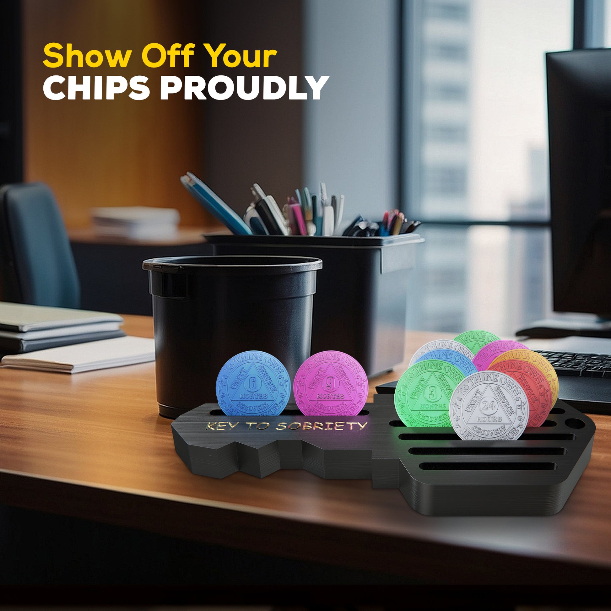 - Symbolic Design for Sobriety – Embrace your journey with our AA coin holder, beautifully shaped like a key, symbolizing the "Key to Sobriety." This stunning piece is crafted to hold and display up to 14 chips, serving as a constant reminder of your strength and growth as you steel your path to recovery!