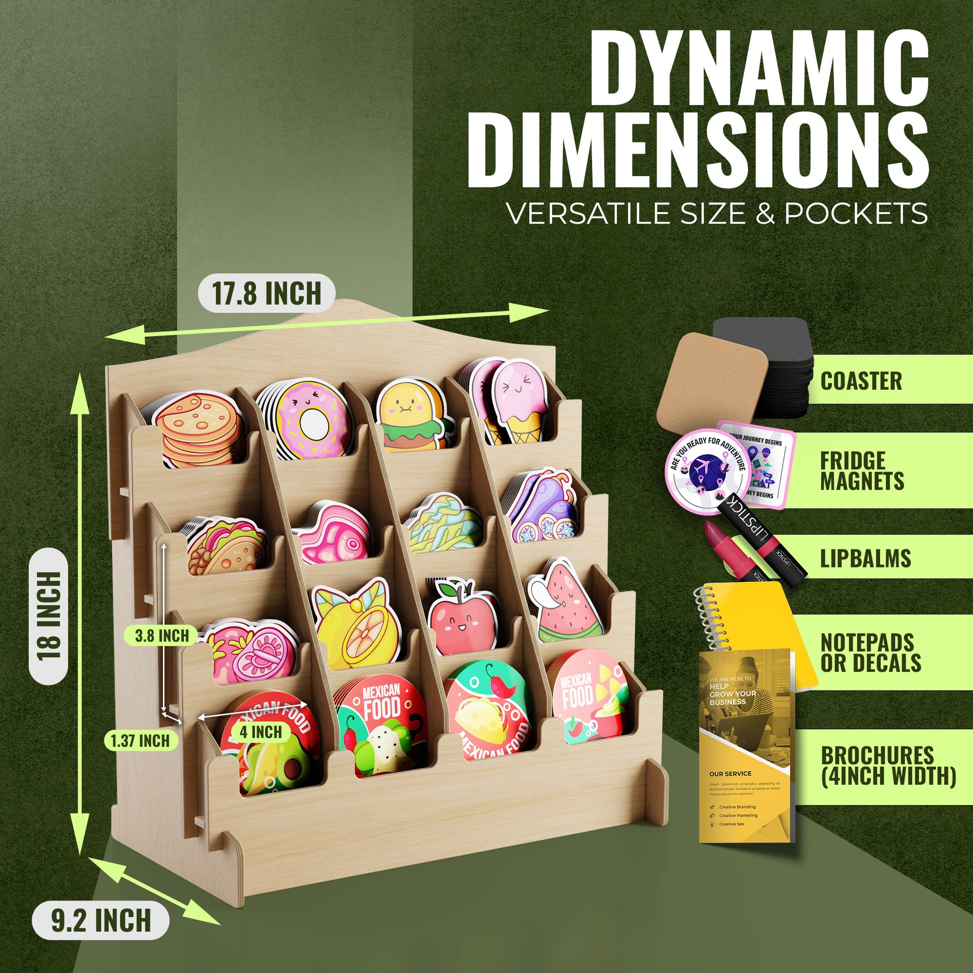 HOTCAN Sticker Display Stand with 16 Curved Pockets - Brochure Holder with Customizable Space - On the Go Display Stands for Vendor Events - Ideal for Small Business Vendors - Lifetime Assurance