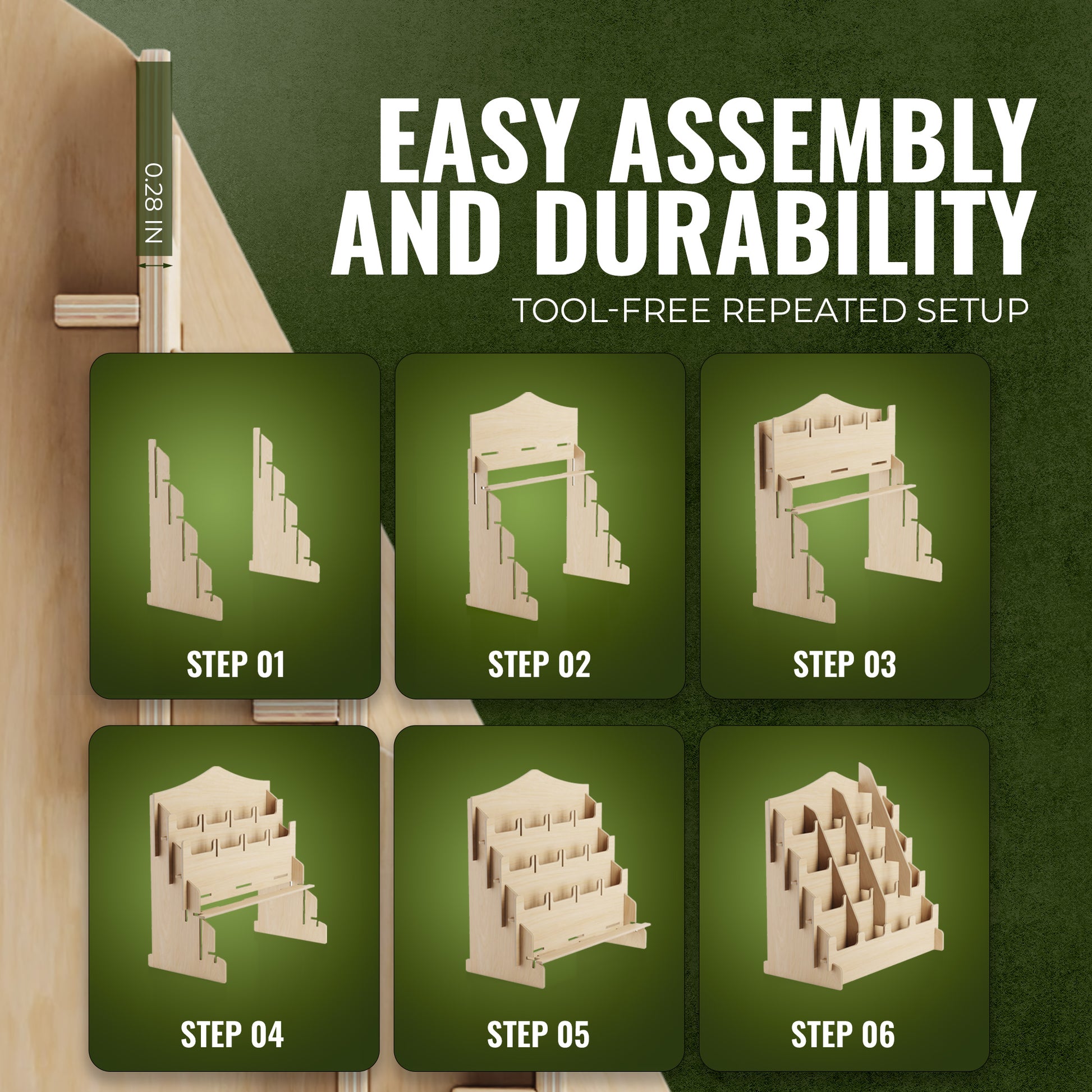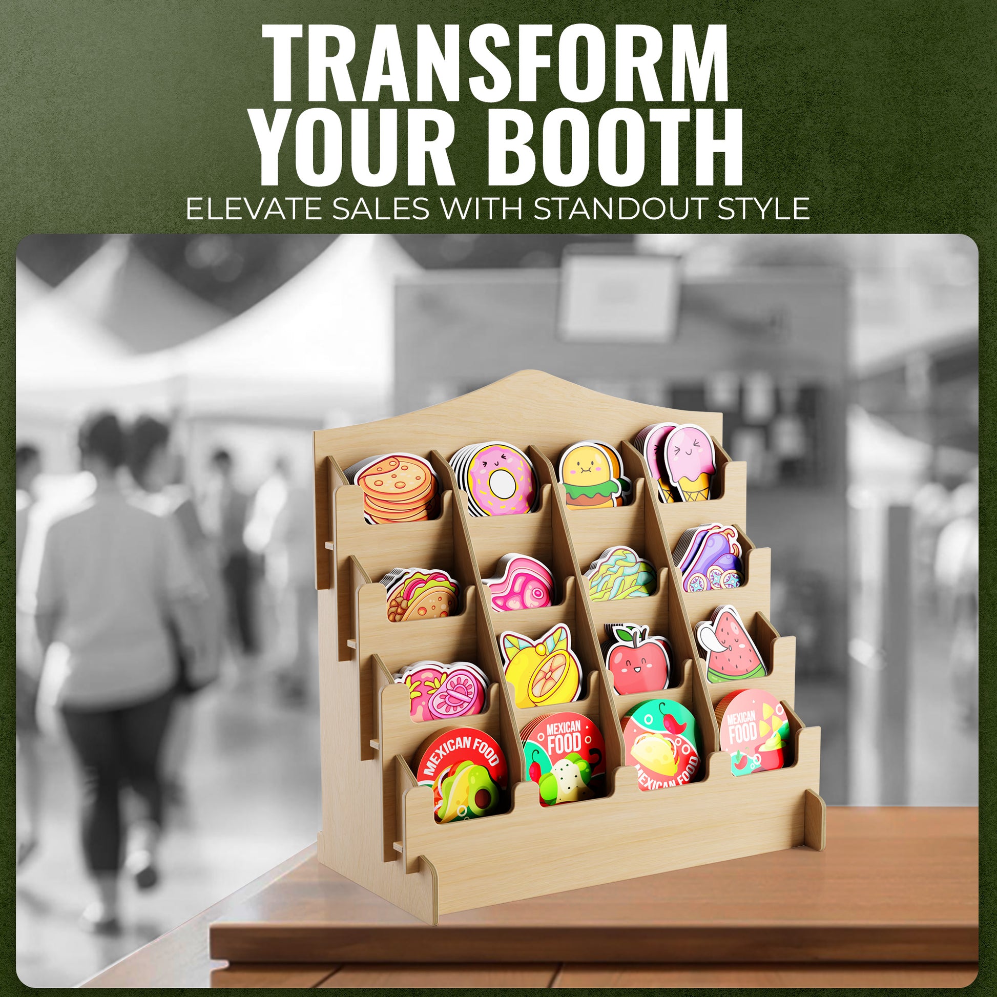 - Durable Elegance - Crafted from robust basswood, this sticker display organizer stand ensures enduring sturdiness for repeated setups, making it your go-to choice for showcasing stickers in trade shows with style.