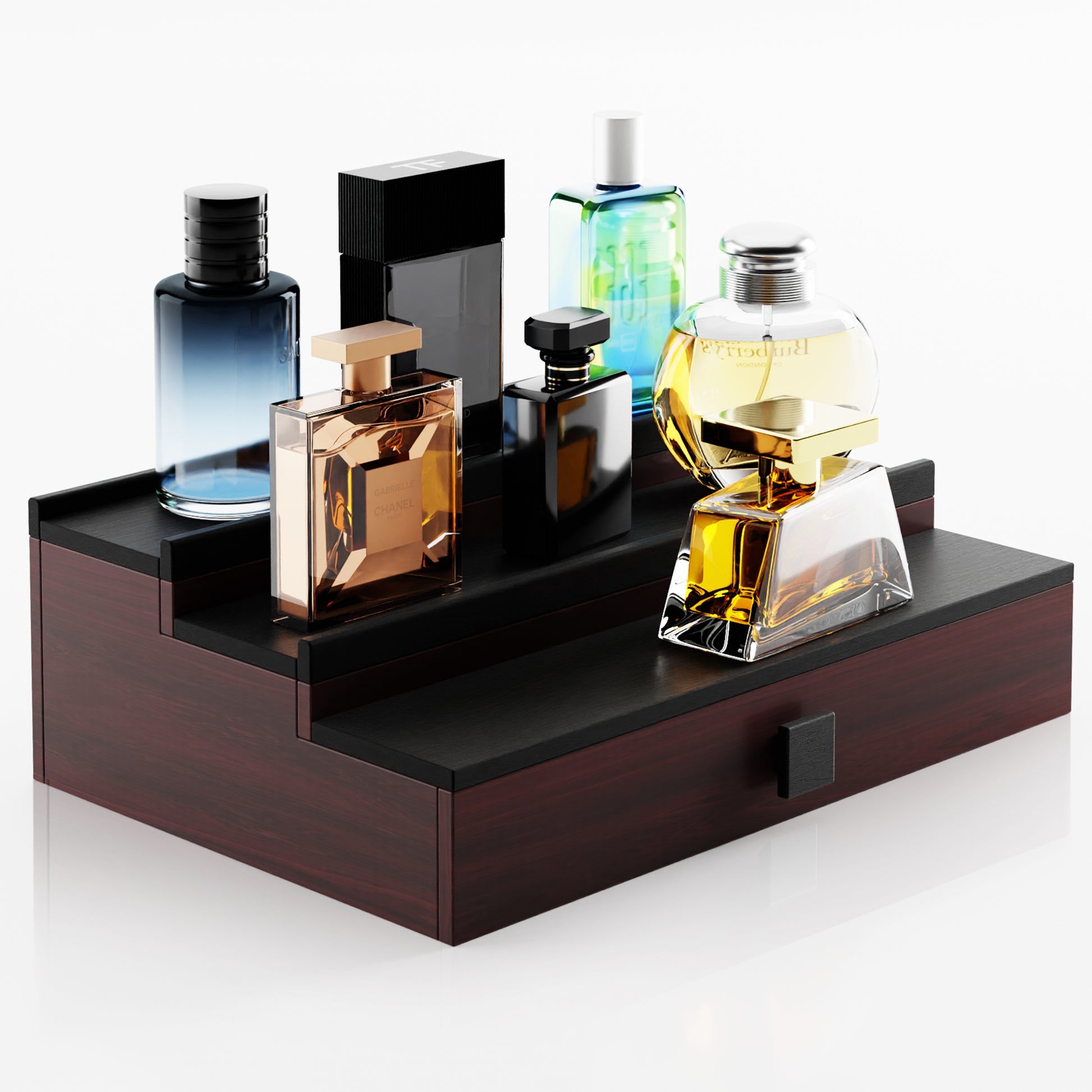 Showcase Your Colognes with Elegant Tiered Display: The natural wood finish and compact design of this 3-tiered organizer make it the perfect addition to any executive dresser or office desk. It's not just a functional organizer but also a stylish piece to elevate the aesthetics of your space. Each tier is designed to hold and showcase your cologne bottles, allowing you to easily access and select your preferred scent. The wooden cologne rack is perfect for displaying your perfumes in style and class.