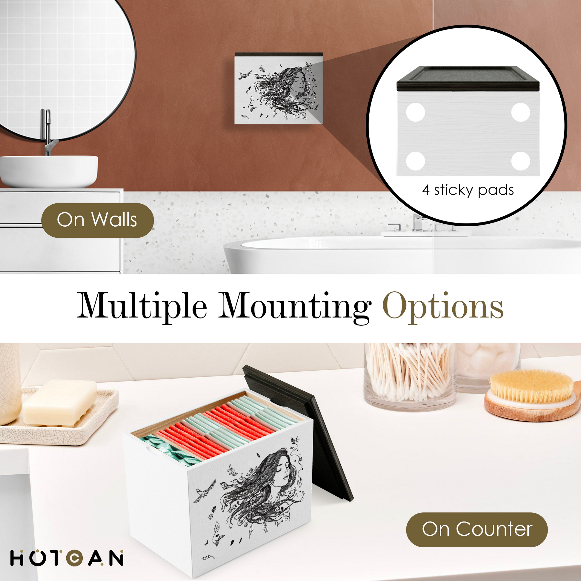 HOTCAN Wooden Tampon Holder for Bathroom - Tampon Organizer with Woman Enjoying the Moment Pattern - Discreet Bathroom Organizer for Private Pad Storage - Gift for Her
