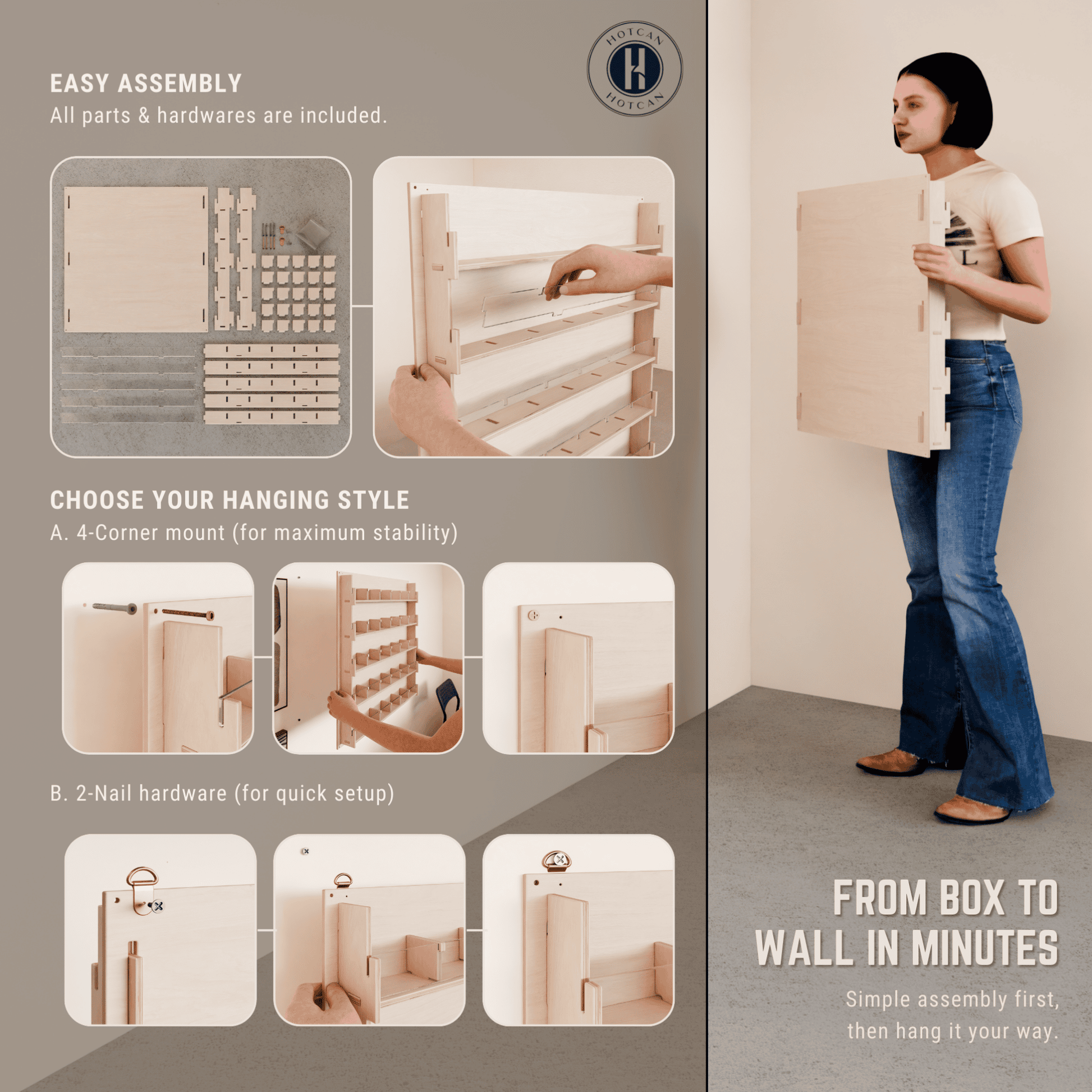 - FROM BOX TO WALL IN MINUTES – No complicated tools or stress. Each sticker holder display comes with all hardware included, so you can assemble quickly and hang it your way—perfect for busy shop owners and teachers who value time.